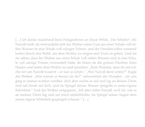 Schönheit.” Und der Weiher entgegnete: „Ich aber liebte Narziß, weil ich, wie er