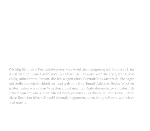 Wichtig für meine Portraitobsession war wohl die Begegnung mit Monika H. im